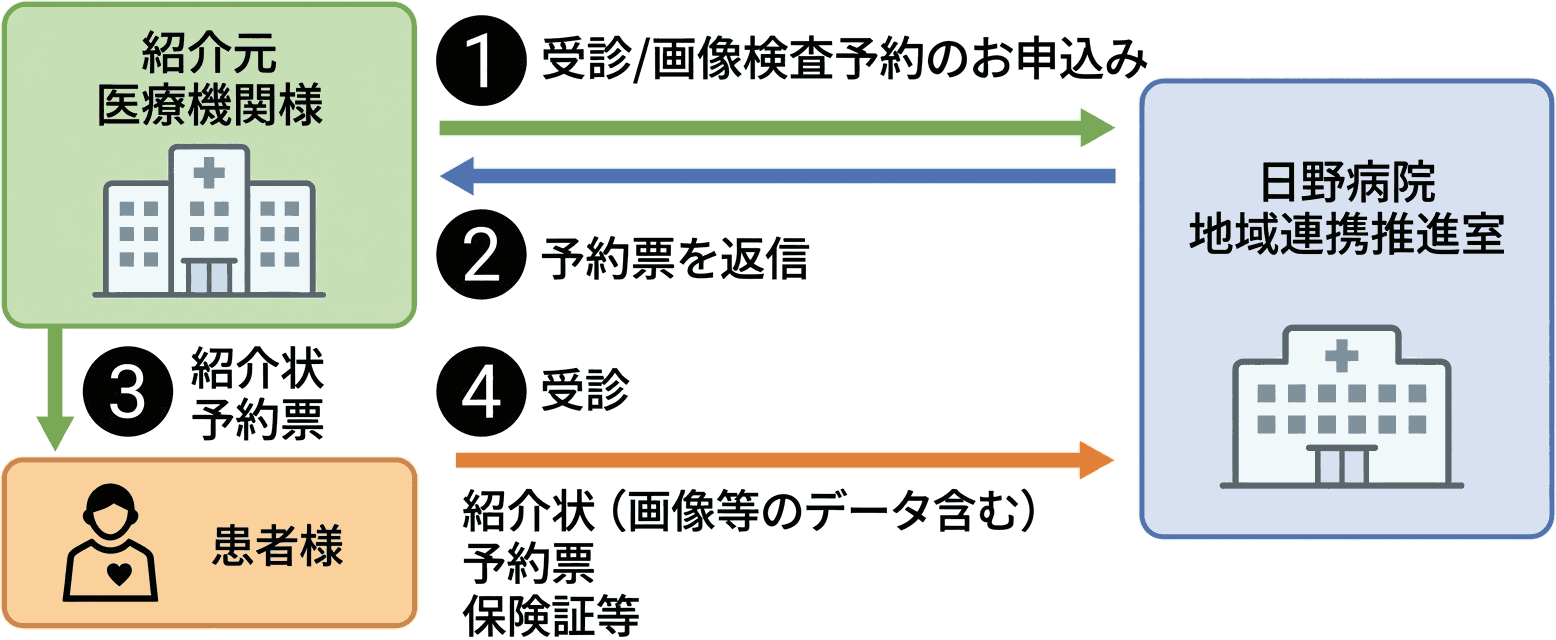 地域連携推進室までお電話いただき、患者様の氏名、生年月日、